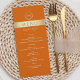 Add a touch of modern elegance to your wedding with this simple yet simple orange wedding menu card. Featuring a minimalist design, personalized monogram, and luxe gold accents, this menu is the perfect blend of style and refinement for your special day.
