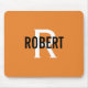 Modern orange white monogram men name mouse pad