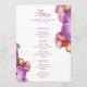 This modern orchid menu is a great way to quickly create a custom menu for your wedding. Orchids provide an ornamental backdrop, and the front features the menu items. The back has an orchid motif where you can add your desired monograms. Use the template to create your own modern orchid wedding menu.