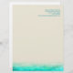 Beautiful blue green painted sea with graphic waves sparkle overlay wedding or everyday letterhead. A beautiful beach, coastal ocean inspired, contemporary, letterhead featuring a unique stylized, hand watercolor sea, on a sand color paper. Beach / ocean feel letterhead. Edit this letterhead with your name and contact details. Uniquely designed and painted by Sarah Trett.