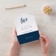 This modern yet elegant wedding invitation features a painted beach / ocean background, the greeting "love" and all your details. This design would be perfect for a beach wedding or a destination wedding. The inside of the card features the invitation and an rsvp card that can be detached and mailed. On the back of the card is the mailing address and return address. No need to order envelopes!!