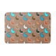 Bath mat in a minimalist, modern paisley pattern, outlined accented with dots - shades of tan, rust, cream and turquoise, on a medium taupe brown background