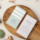 Modern and chic business card design in a unique vertical format features three wide white stripes on a pastel spa blue-green background, with your name and business name or title in an attractive mix of lowercase serif and modern caps typefaces. Add your full contact information to the back in rich navy blue. Suitable for any occupation; example shown for fitness instructors.