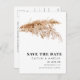 Simple and minimalist in style pampas grass save the date postcard featuring an image and black text. The back of the postcard is organized for the couples message.