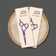 Elegant fully customizable business card template with colorful scissors icon. Perfect for hair stylists, hair salons.