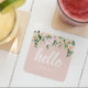 Modern Pastel Pink Flowers Hello And You Name Square Paper Coaster
