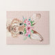 Modern Pastel Pink Watercolor Bunny With Flowers Jigsaw Puzzle