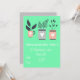 A modern stylish design suitable for a housewarming party of cute pastel pot plants in pink and gray with peppermint background. This design is whimsical and can be fully customised to include your own personal details.