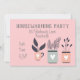 A modern stylish design suitable for a housewarming party of cute pastel pot plants in pink and gray. This design is whimsical and can be fully customised to include your own personal details.
