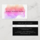Chic watercolor appointment cards for your salon, spa or beauty services feature your name or company name layered on a blooming inkblot illustration in shades of violet, pink and golden coral. Add your cancellation policy, custom heading, and contact information to the back in white on black. Includes space to write in your customer's next appointment date and time.
