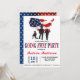 Modern Flag Military Going Away Invitation. Design features US flag and party details on the front and US Flag colors background and stars on the back. Perfect for Going Away, Coming Home or Retirement party. Template can be modified.