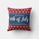 Decorate for Independence Day with this Modern Patriotic Stars Stripes July 4th Monogram Outdoor Pillow. It is modern designed on both sides with the text "Happy 4th of July" in bold white typography calligraphy script lettering on center of navy blue and white stripes. The background is red with white stars pattern. Personalized with family last name or your custom text.