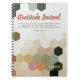 A stylish gratitude journal for fall or any season of the year, featuring a modern pattern of hexagons in muted autumnal colors - green, beige, orange, pink and white. The title editable "Gratitude Journal" is in muted orange modern script font, and underneath is the Bible verse "Enter into His gates with thanksgiving, And into His courts with praise. Be thankful to Him, and bless His name." Psalm 100:4 Personalize with your name.
