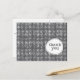 This thank you postcard features a modern pattern in charcoal and white colors and is the perfect way to thank your friends/family members for their presence/gifts on your wedding. It can also be used for a variety of other occasions. You can move/delete the design elements/type according to your choice/preferences.