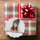 Modern Peace & Joy Christmas Botanical Photo Ornament Card