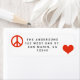 This modern holiday return address label features a classic white background with modern peace sign and heart in red. **ALL colors including symbols, background, and text are customizable using the design tool.