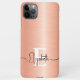 Protect your phone in style with our Modern Peach Fuzz Brushed Metallic Monogram Script iPhone 11 Pro Max Case! Featuring a chic peach fuzz brushed metal background, this case showcases a bold white monogram followed by an elegant black script name. Perfect for personalizing your phone and making a statement! This sleek and durable case is an ideal gift for birthdays, office coworkers, bridal showers, bachelorette parties, bridesmaids, and more. Plus, the design is available for various models, catering to both Samsung and Apple iPhones, ensuring everyone can enjoy a touch of elegance. Upgrade your phone's look with this modern and sophisticated monogrammed case!