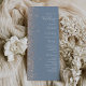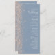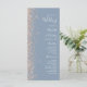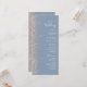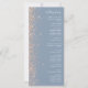 The left-hand edge of this elegant modern wedding program features a peach faux glitter design. The customizable text combines white handwriting, copperplate and italic fonts on a dusty blue background.