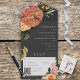 Modern Peach Mimosa Floral Black QR Code All In One Invitation