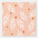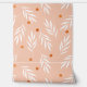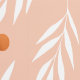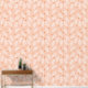Modern peel and stick wallpaper featuring white leaf designs and orange dots on an apricot pink background—perfect for adding a fresh, stylish touch to any space.