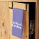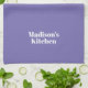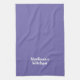 Fully customizable White text, periwinkle lilac solid plain background kitchen towel, linens.