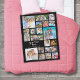 Easily create a modern, unique, photo memory keepsake blanket utilizing this easy-to-upload photo collage template with 19 square and rectangle pictures and personalized with your custom text in your choice of font styles and blanket colors (shown with a hand lettered brush font in white on black). Ideal for memorable, meaningful gifts for special occasions and holidays. CHANGES: Change the black background color and/or change the text font style, size, color or placement by clicking EDIT. ASSISTANCE: For help with design modification, personalization or color change, contact the designer BEFORE ORDERING via the Zazzle Chat MESSAGE tab below or email makeitaboutyoustore@gmail.com.