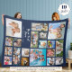 Modern Personalized 19 Photo Collage Navy Blue Fleece Blanket