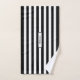 Modern personalized black and white striped bath towel set featuring a nameplate in black script encased by a black border. You can personalize the name in an elegant text and change the colors making it a perfect treat for yourself or as a special gift to a friend or family member. Designed by Thisisnotme©