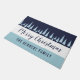 Modern Personalized Christmas doormat in blue and white with a Christmas tree pattern.