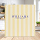 Modern personalized family recipes binder with yellow striped pattern.