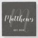 Modern Personalized Monogram and Family Name Black Stone Coaster