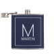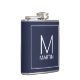 Modern minimalist design features personalized monogram and name in white modern sans serif font style on navy blue background.