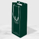 This gift bag features personalized groomsman's monogram and name with title and wedding date in white modern sans serif font style on emerald green background.