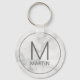 Modern minimalist design features personalized monogram and name in grey modern sans serif font style on white marble background.