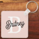 Modern Personalized Monogram and Name Pastel Pink Keychain