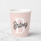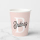Modern Personalized Monogram and Name Pastel Pink Paper Cups