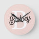 Modern Personalized Monogram and Name Pastel Pink Round Clock