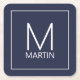 Modern minimalist design features personalized monogram and name in white modern sans serif font style on navy blue background.
