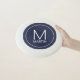 Modern minimalist design features personalized monogram and name in white modern sans serif font style on navy blue background.