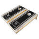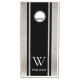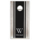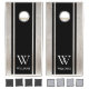 Cornhole set featuring modern minimalist design and elegant personalized monogram with name.