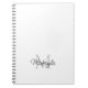 This modern notebook is decorated with a stylish monogram and name in black and gray.