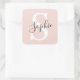 Modern Personalized Name Monogram Pastel Pink Square Sticker