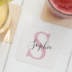 Modern Personalized Name Monogram Pink Square Paper Coaster