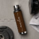 Modern Personalized Name Script Black And Brown Wedding gift Water Bottle.