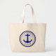 Modern Personalized Nautical Navy Blue Anchor Large Tote Bag