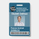 Simple and modern customizable vertical medical staff badge with personalized logo, barcode, photo, name, and address. Created for medical center, hospital and healthcare facility. Main colors of this professional template : teal blue and white.