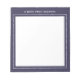 Modern personalized stationery in a simple style with dot-dash border in eggplant purple and white.