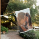 Modern Personalized We’re Engaged Overlay Photo House Flag