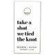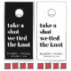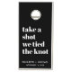 Fun cornhole set for your wedding reception, parties and newlywed life featuring "take a shot we tied the knot" written in large bold trendy typography and your first names and wedding date in minimal modern typography. The background and text colors can be changed to suit your wedding colors by editing in the design tool, or contact us at juliehortondesigns@gmail.com for assistance.