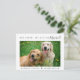 Modern engagement announcement postcard featuring your pets' photo, "Our Humans Are Getting Married" in a mix of simple typography and a stylish script and your first names on the front; you can customize to "My Humans" for one cat or dog and add your wedding location and date if desired. On the reverse side, customize your engagement announcement message and add your names (and the pets' names too) in a signature-like script.